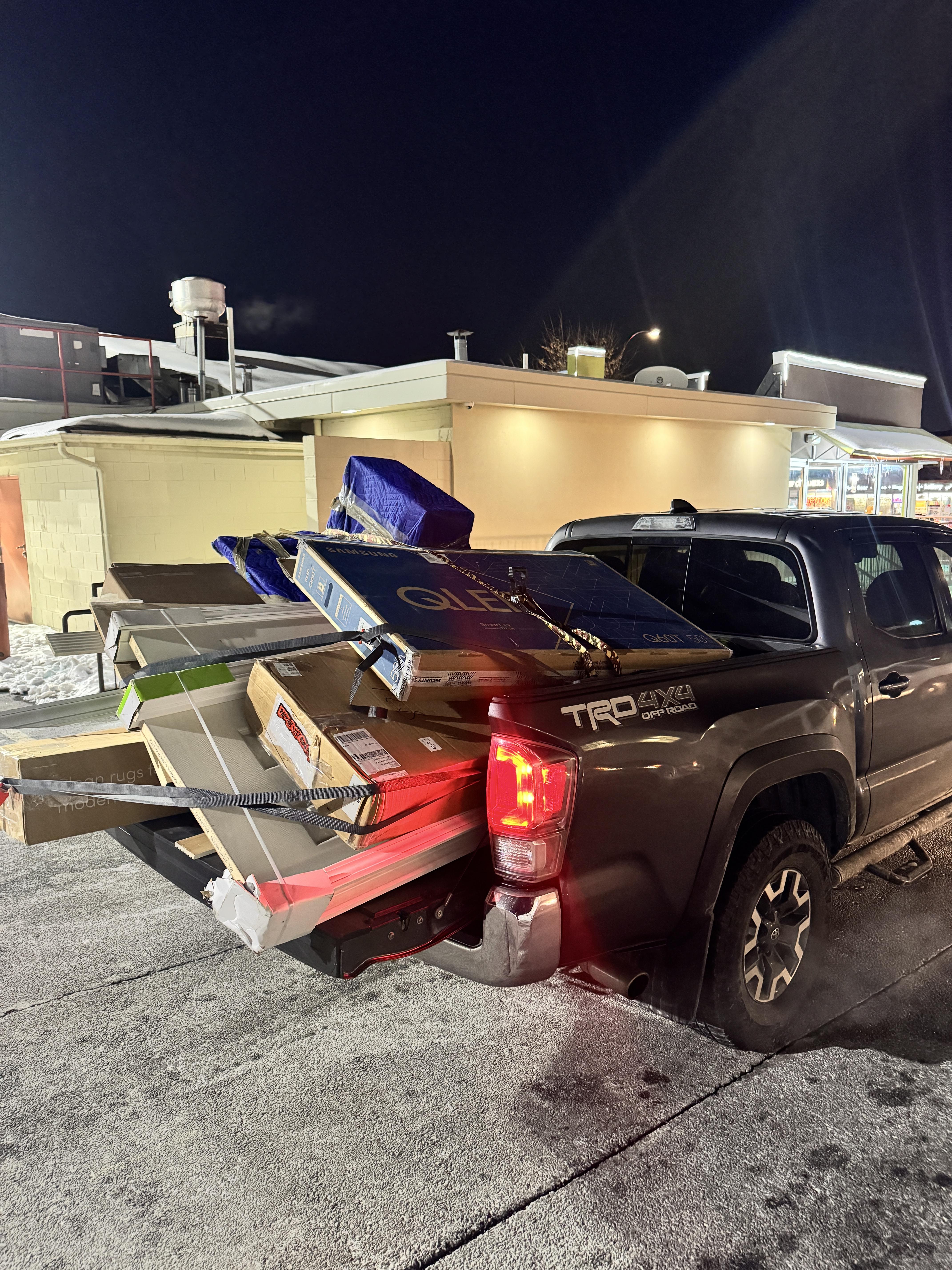 We don't haul hazardous materials (chemicals, paint, asbestos) or anything illegal. Everything else, we can usually handle.